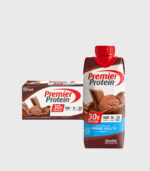 chocolate 30g Protein Shake has caffeine = 1 cup of coffee to start your day. This item is shipped as a pack of 12 individual shakes. Each Premier Protein Shake contains 30 grams of protein, complete with all of the essential amino acids, 1g of sugar, 3-5g carbs (depending on flavor), 160 calories, 24 vitamins & minerals, and is also low in fat.